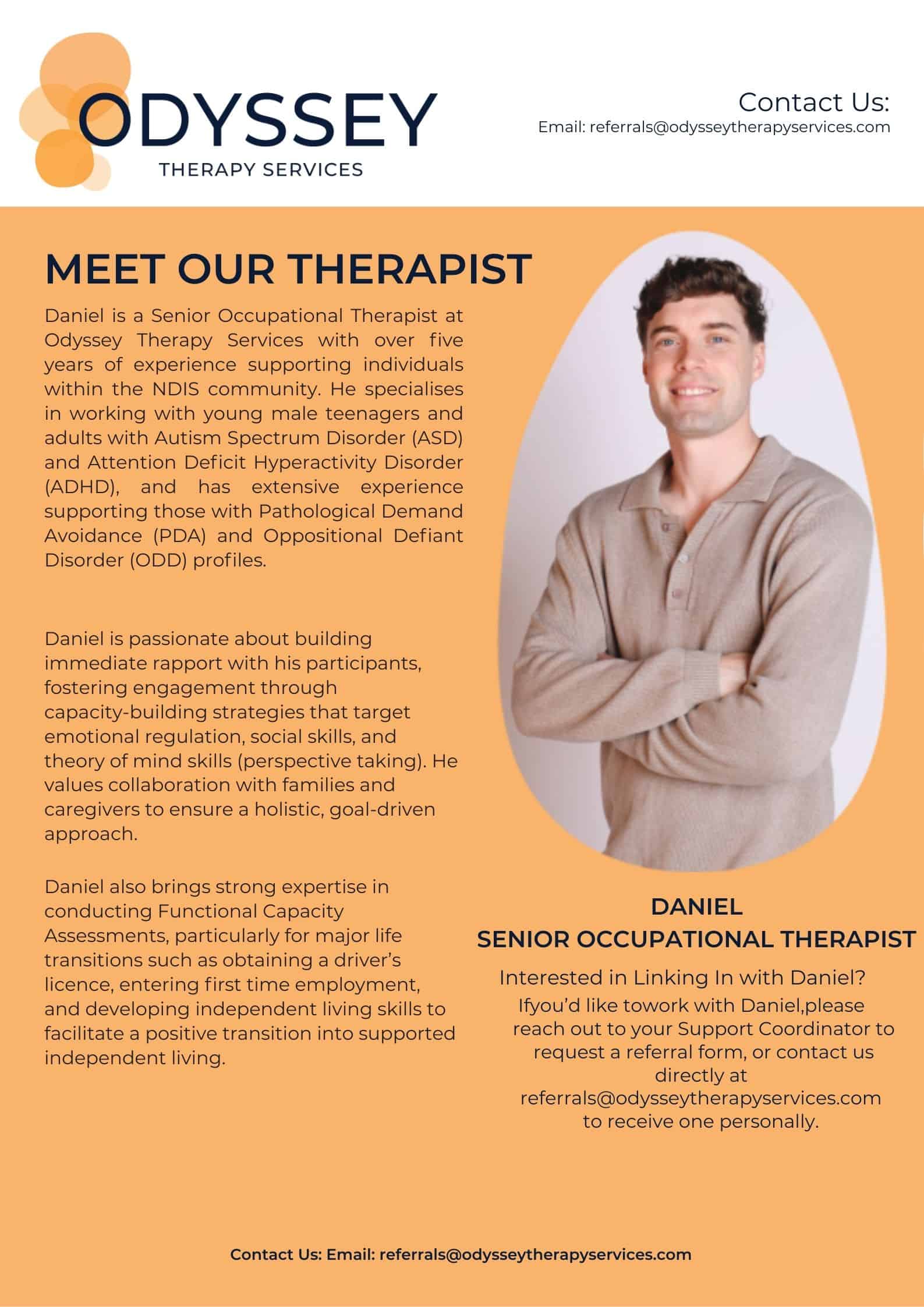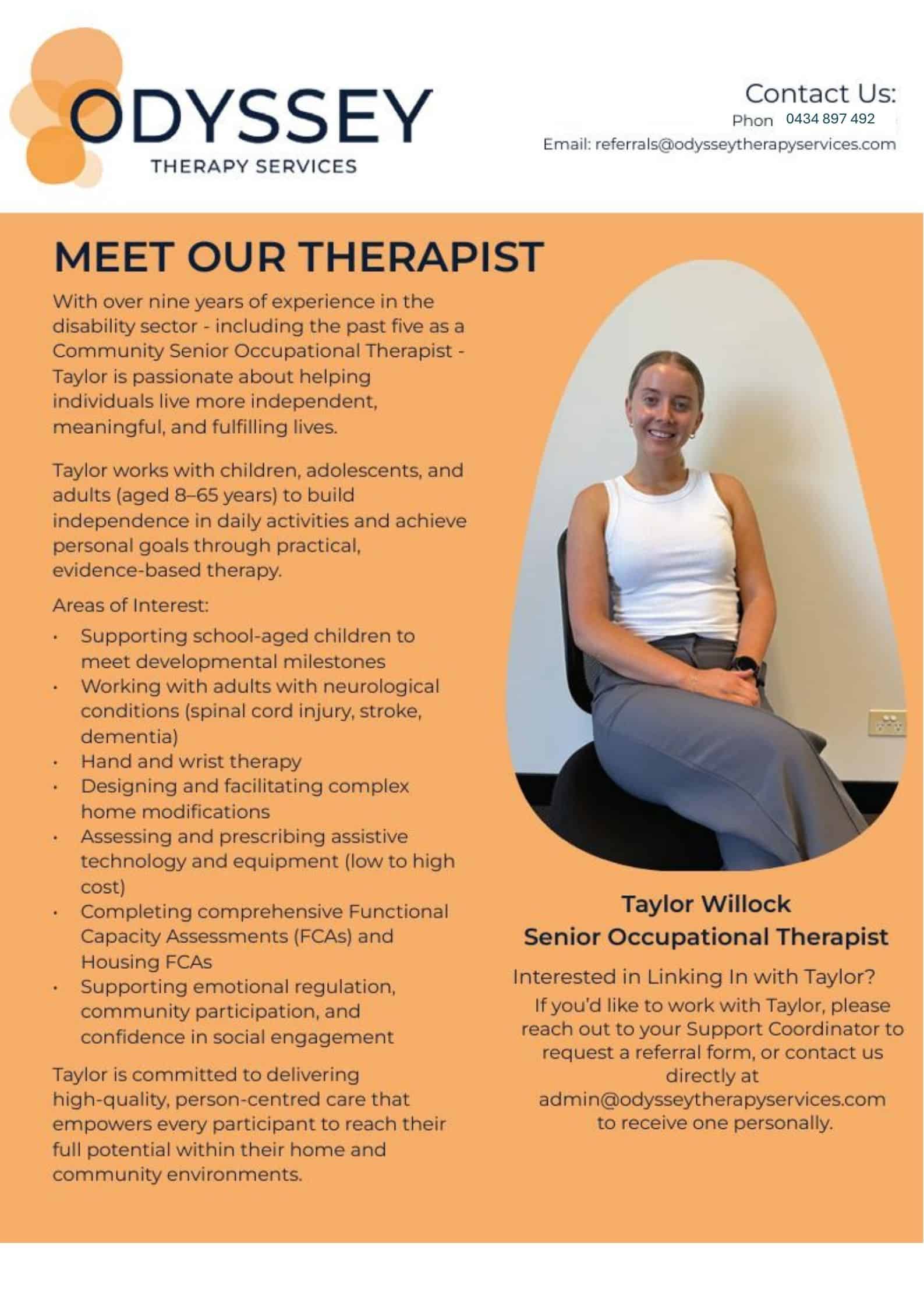 Please reach out to referrals@odysseytherapyservices.com to discuss our services.